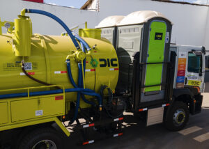 A coleta de efluentes em fossas sépticas é realizada com caminhões hidrovácuo equipados com bomba de sucção, conforme as diretrizes da NBR 13969 (ABNT), que trata do dimensionamento, construção e manutenção de sistemas de tratamento individual. Esse processo remove o lodo acumulado na fossa, evitando saturação do sistema, mau cheiro, proliferação de vetores e contaminação do solo e dos lençóis freáticos.