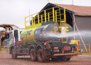 Umectação / aspersão de vias internas para controle de poeira.