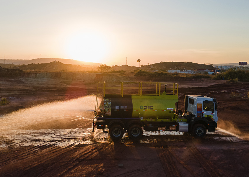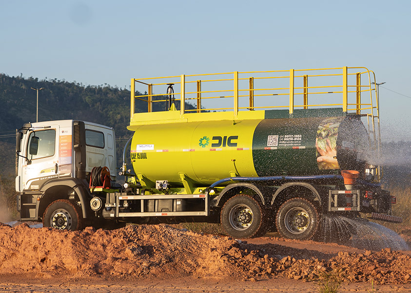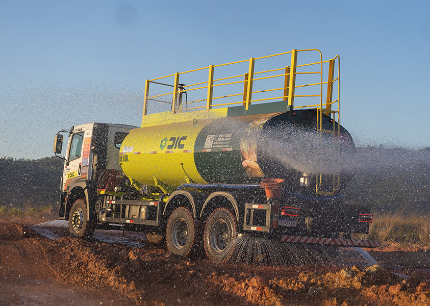O Grupo DIC opera frota própria de caminhões pipa destinada ao atendimento de operações industriais, mineradoras e de infraestrutura, atendendo às demandas operacionais e aos requisitos ambientais aplicáveis.