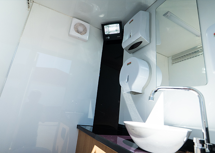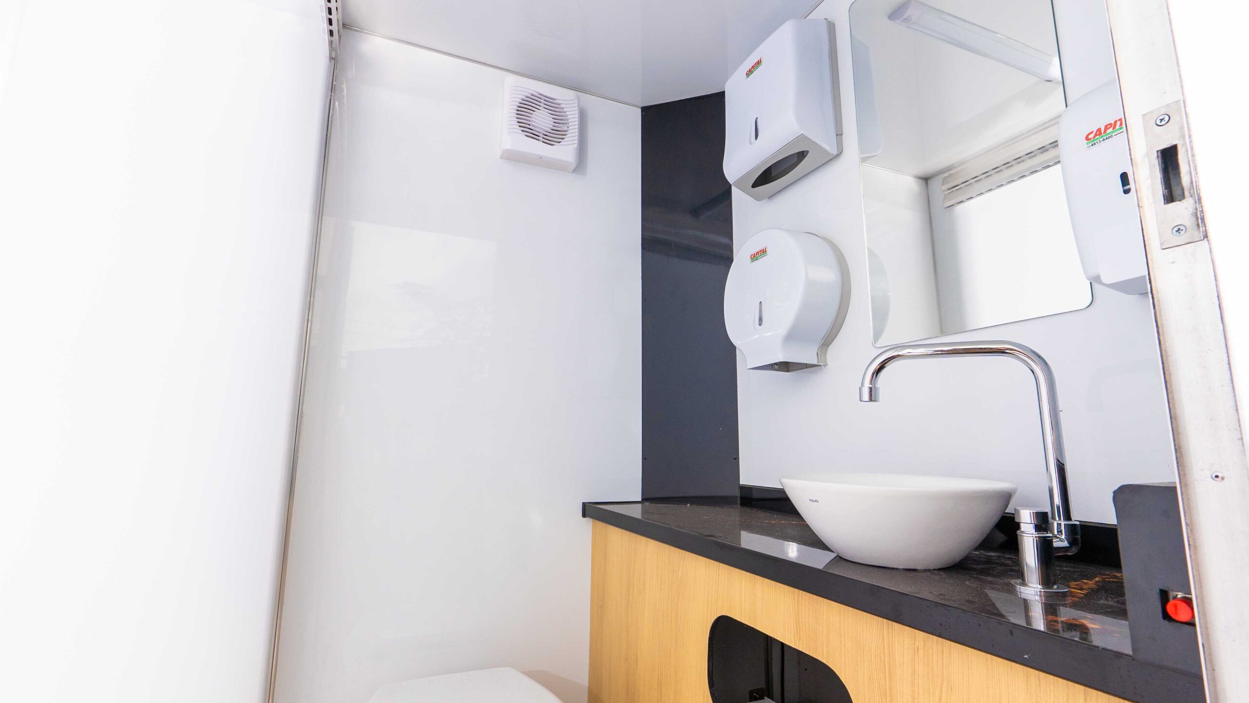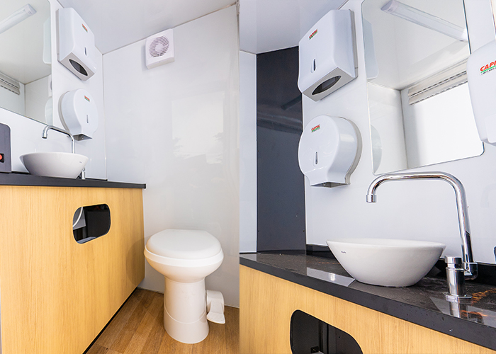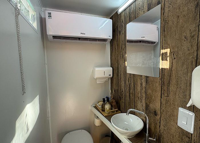 Construídos com materiais de alta resistência e propriedades antichamas, os módulos contam com vaso sanitário náutico, lavatórios com torneiras automáticas para economia de água, e componentes projetados para uso intensivo e contínuo.
